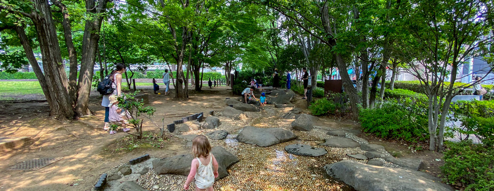 Rainy season is now over and it's already high 30's in Tokyo which really means 40º when you take the humidity into account. This summer we will be exploring lots of splash parks and wading pools often referred to as jabujabu in Japan. Our 1st adventure was heading to Kodomo-no-Hiroba Park in Setagaya to meet some local mum friends.